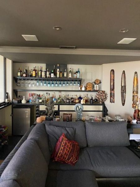- Salón de adultos con barra, mesa de billar, sala y pantalla de TV