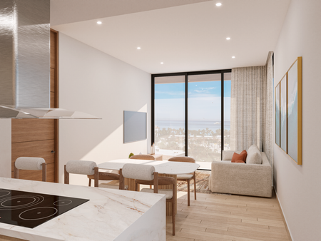 Todas las unidades en MARENA cuentan con 105 a 112 m2, todas de Dos recámaras, Dos baños, un diseño y acabados de lujo, pisos en mármol, todas las unidades con un amplia terraza de 14 a 20 m2
