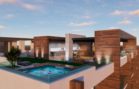 MARENA tendrá un Rooftop con Gimnasio, áreas de descanso y asoleadero, Jacuzzi y principalmente una vista espectacular a la bahía para contemplar los mas bellos atardeceres de este puerto de La Paz. Adicionalmente en la planta baja se ubica una Alberca.